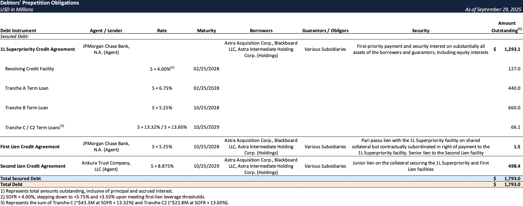 - To preserve dwindling cash, Anthology began skipping debt service payments, including a second-lien interest payment on Dec. 31, 2024, and a first-lien interest payment on March 31, 2025.