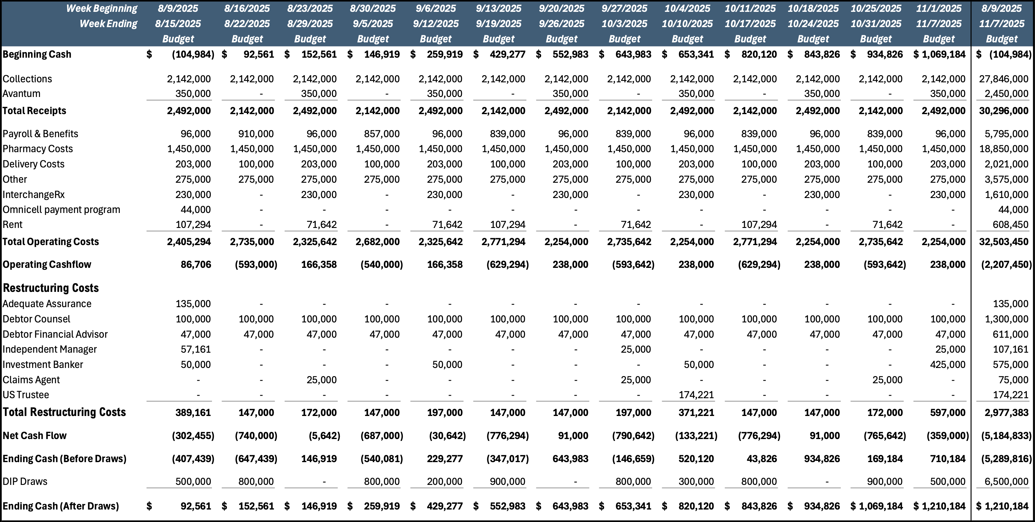 - In response, management executed a drastic downsizing strategy between late 2022 and early 2025, closing six pharmacy locations and exiting markets in Maryland, Texas, Virginia, Connecticut, Pennsylvania, and Florida. Despite these measures, which reduced daily purchasing needs and overhead, the Company’s cash flow remained negative.