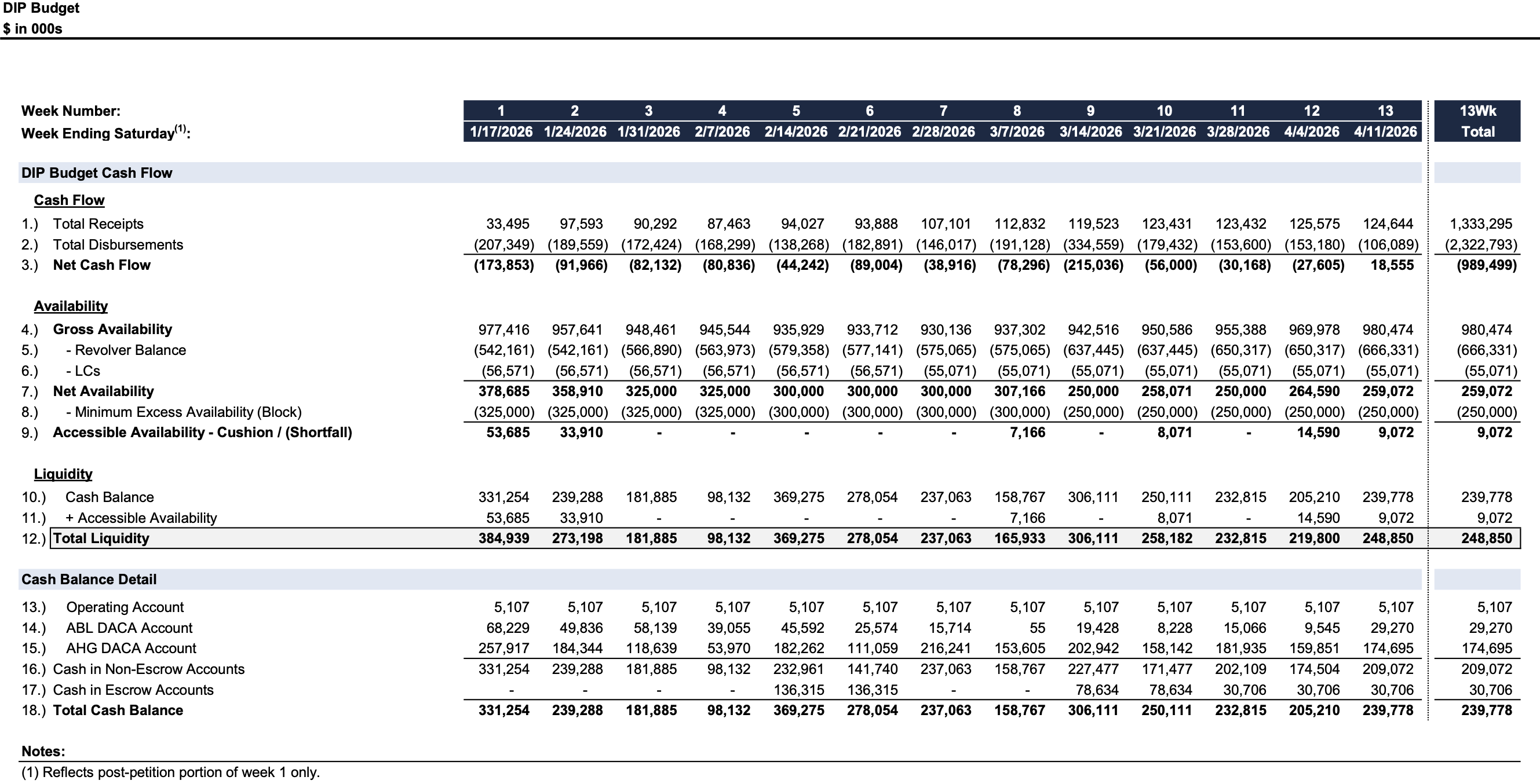 With DIP funding secured, the Global Debtors aim to stabilize operations, restore vendor confidence, and emerge with a right-sized capital structure.