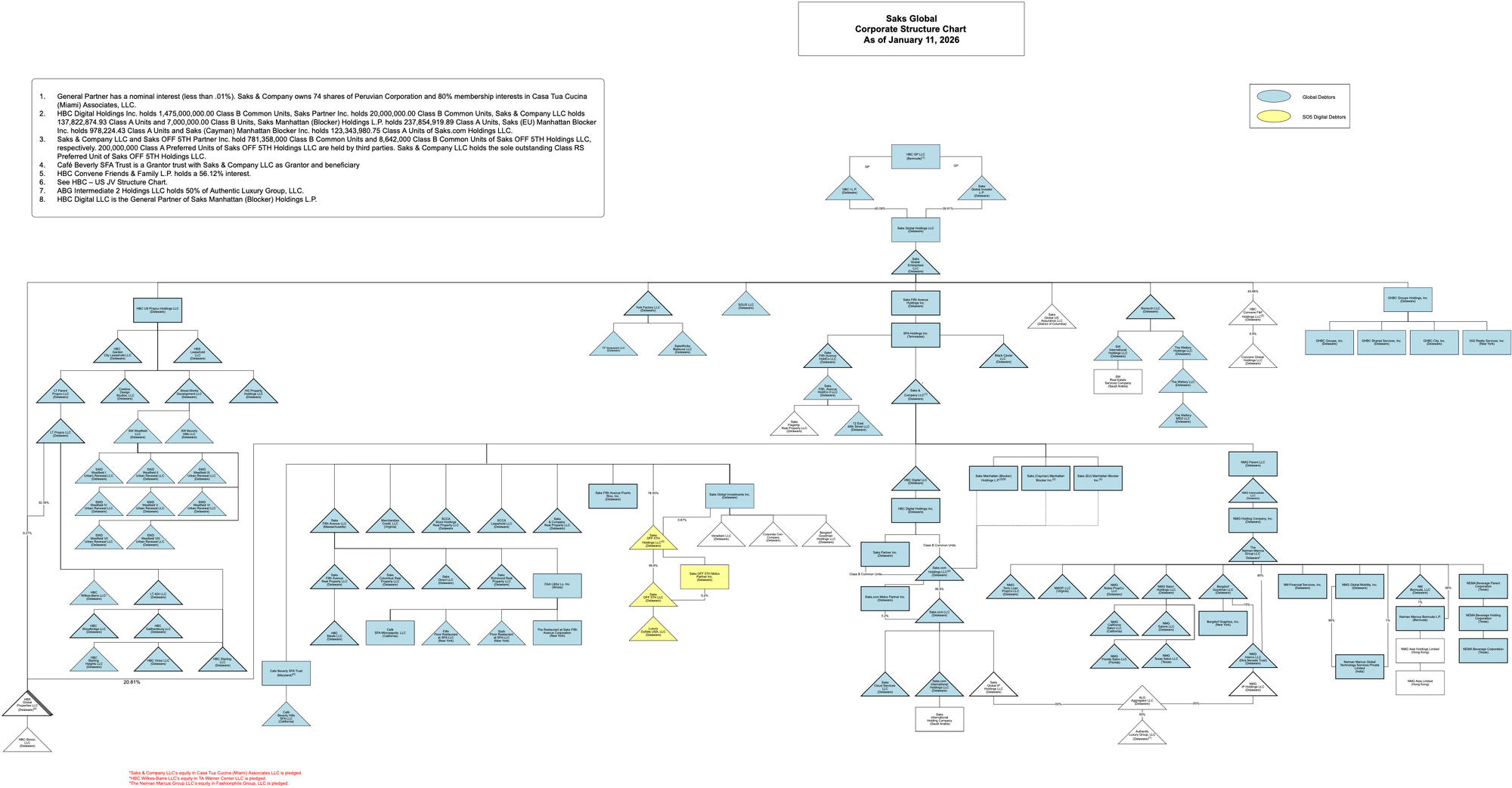 The SO5 Digital Debtors maintain their own capital structure and governance; Saks Global owns approximately 80% with remaining equity held by outside investors, including Insight Partners affiliates. Certain operations remain consolidated within the Global Debtors under intercompany reimbursement arrangements.
