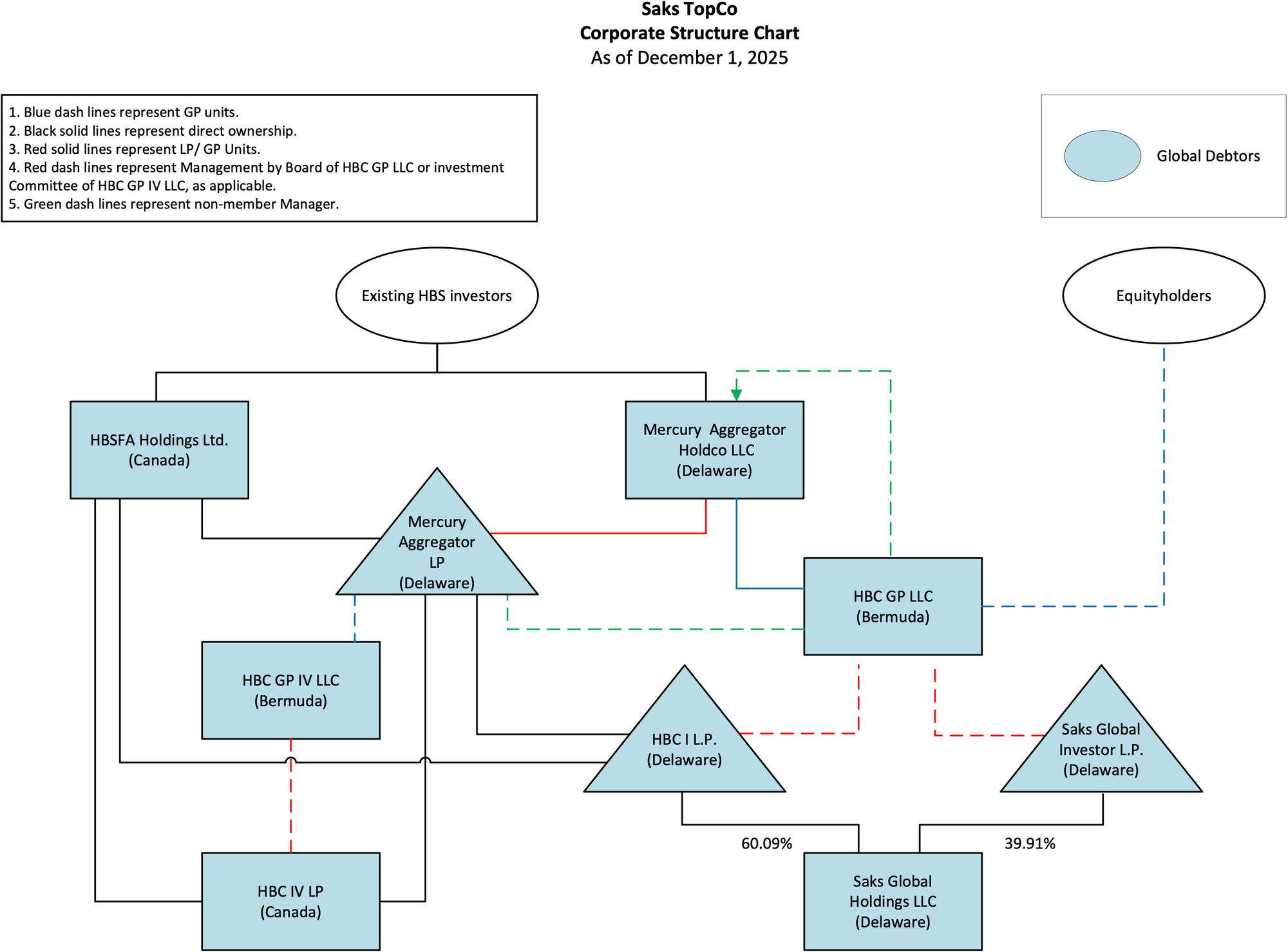 - The Saks OFF 5TH e-commerce business (now the SO5 Digital Debtors) remained a separate entity, approximately 80% owned by Saks Global with the remainder held by outside investors, including Insight Partners affiliates.