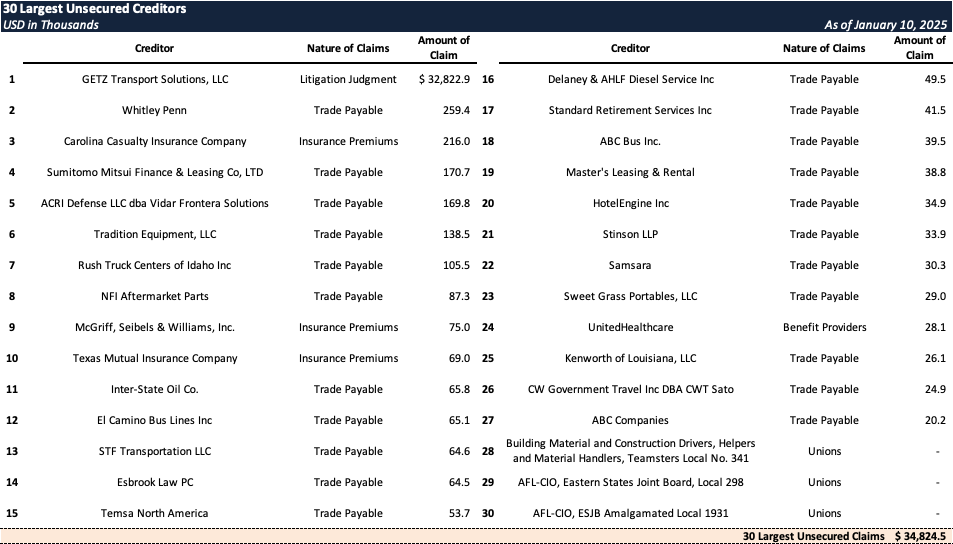 The Debtors primarily serve the liquid natural gas, clean energy, petrochemical, mining, and oil and gas sectors through a fleet of 315 vehicles, comprising 178 owned and 137 leased assets.